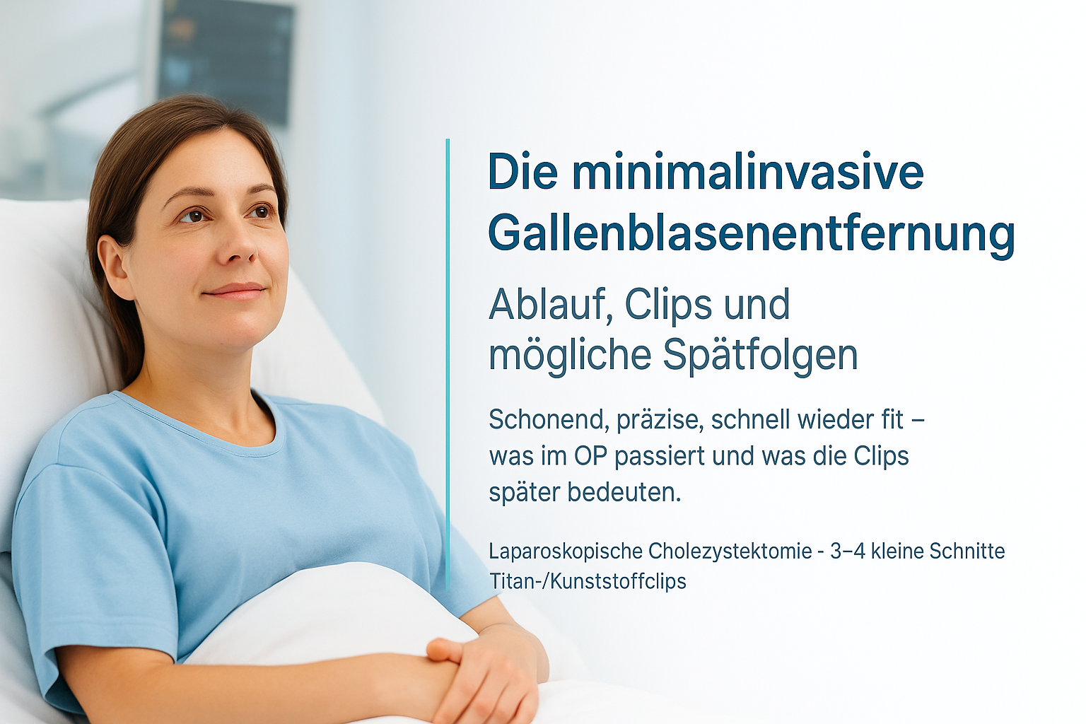 Die minimalinvasive Entfernung der Gallenblase – auch laparoskopische Cholezystektomie genannt – ist heute der Standard bei Gallenblasenoperationen. Dabei handelt es sich um eine hochpräzise, schonende Operationstechnik, bei der die Gallenblase durch kleine Schnitte entfernt wird, ohne große Wunden oder sichtbare Narben zu hinterlassen. Entscheidend ist dabei die sorgfältige Blutstillung während des Eingriffs.